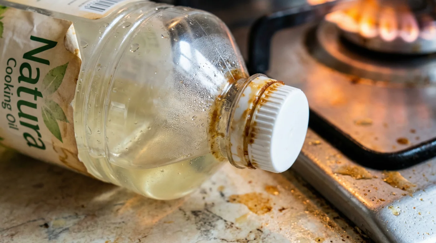 Estás frente a los fogones. La cebolla cabezona empieza a sudar en el sartén y, por puro instinto, estiras la mano hacia la derecha. Ahí está tu botella de Aceite Natura, justo al lado de la estufa, lista para la acción. Al agarrarla, notas que el plástico está ligeramente tibio. Viertes un chorrito y sube un olor tenue, casi imperceptible, que recuerda a la madera guardada o a nueces cansadas. Lo ignoras, pensando que es el aroma normal de tu cocina en movimiento. Sin embargo, ese ligero calor en tus dedos es la evidencia física de un error silencioso que está arruinando tus comidas todos los días.