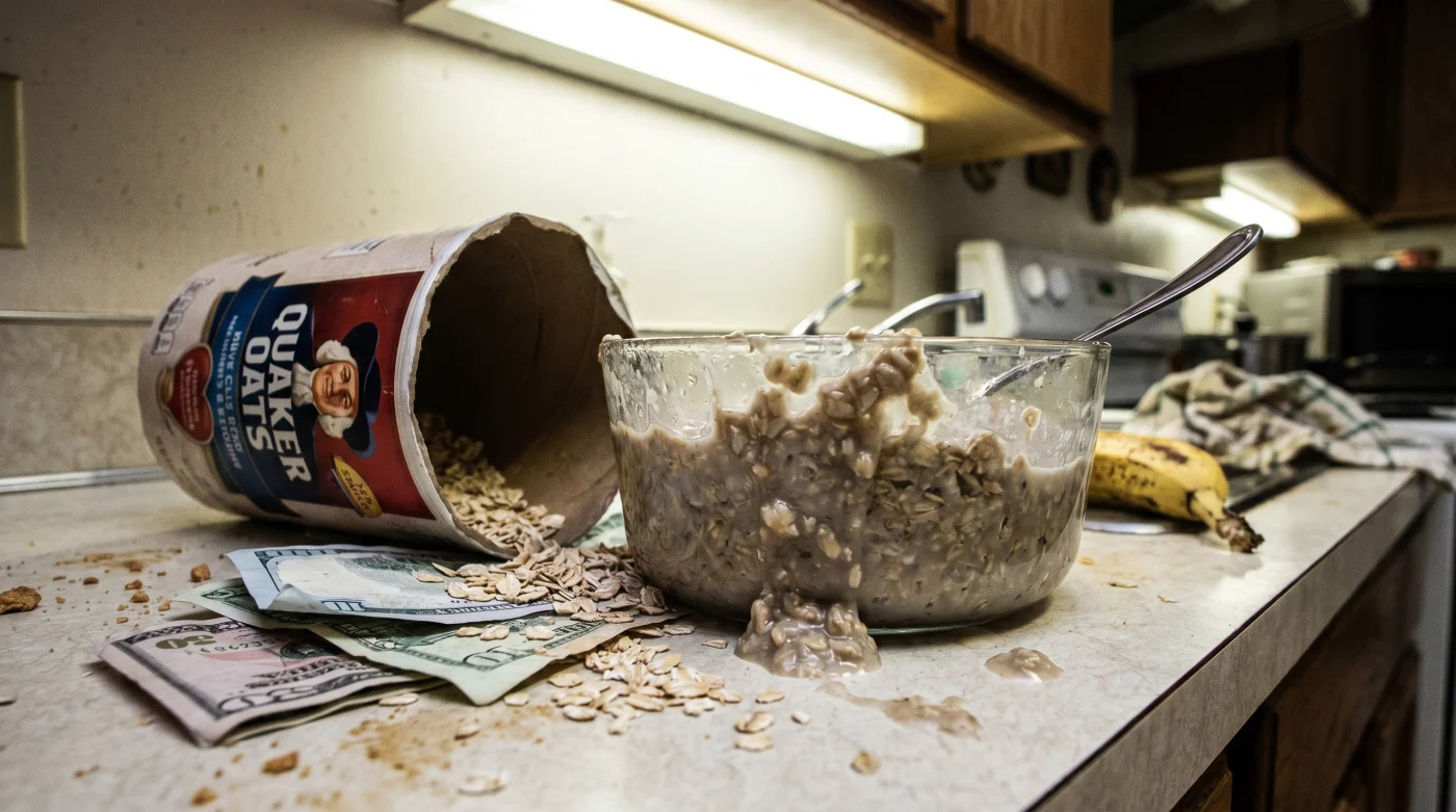 Abres la nevera a las seis de la mañana, preparándote para enfrentar el trancón, y sacas ese frasco de vidrio frío y empañado. La cuchara metálica choca contra el borde con un chasquido sordo, hundiéndose en una masa grisácea, viscosa y pesada. Durante meses te has convencido de que esta pasta fría de avena Quaker es la cumbre de tu disciplina matutina. La masticas mecánicamente, tolerando esa textura resbaladiza y densa porque crees firmemente que estás haciendo lo correcto para tu sistema digestivo. Sin embargo, esa capa de gel transparente que ahora recubre los bordes de tu frasco, sintiéndose fría en el paladar, es exactamente la evidencia de que te estás robando a ti mismo los beneficios nutricionales por los que pagaste en el supermercado.