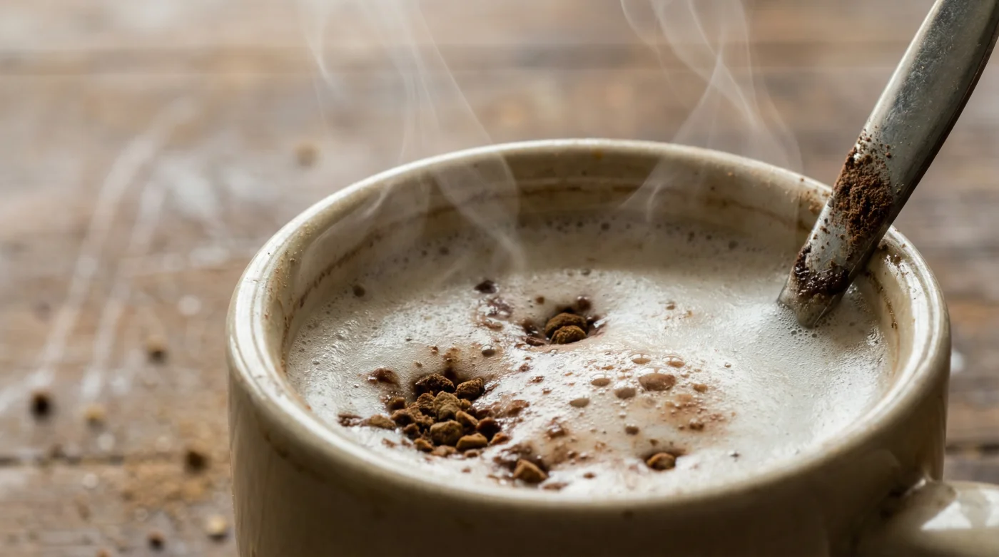 Cuando sometes estas micropartículas a temperaturas superiores a los 70 grados Celsius, ocurre un fenómeno invisible pero letal para los nutrientes. Las vitaminas del complejo B (fundamentales para convertir los alimentos en energía) y la vitamina C son altamente termosensibles. Al golpearlas con leche a punto de ebullición, su estructura química se quiebra por completo. Literalmente, preparas una bebida que sabe delicioso, pero que ha quedado vacía de la energía física que promete esa lata por la que pagaste unos 20.000 pesos en el supermercado de tu barrio. Estás quemando el valor nutricional antes del primer sorbo.