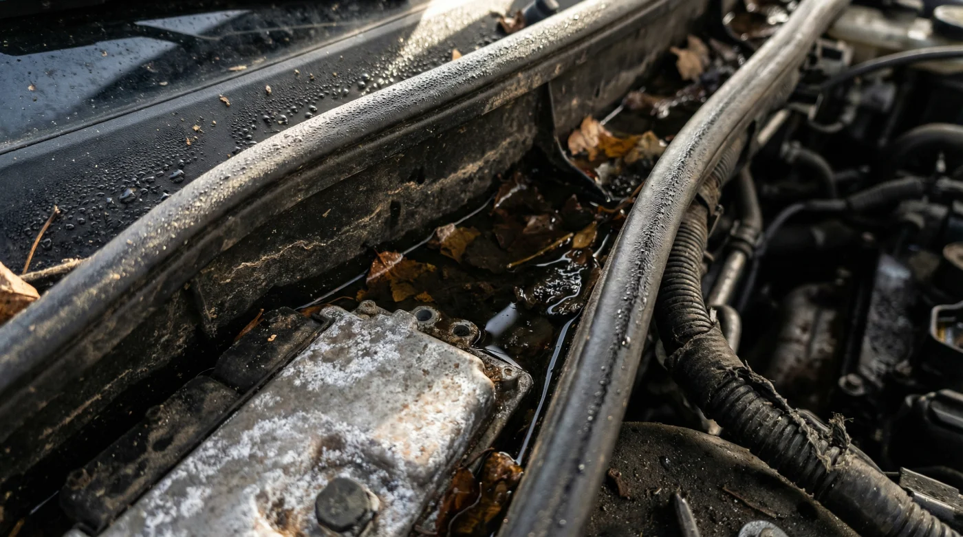 Aquí es donde tu perspectiva necesita girar drásticamente. Piensa en el drenaje delantero no como un simple desagüe de plástico, sino como las arterias de tu sistema eléctrico. Cuando estas vías se tapan, la humedad no se evapora, se concentra. Y esa acumulación directa sobre la cubierta de la unidad de control del motor inicia un proceso de degradación silenciosa que desafía toda la lógica de tu lavado dominical. La paradoja es cruel: entre más lo lavas sin limpiar el drenaje, más rápido ahogas la computadora.