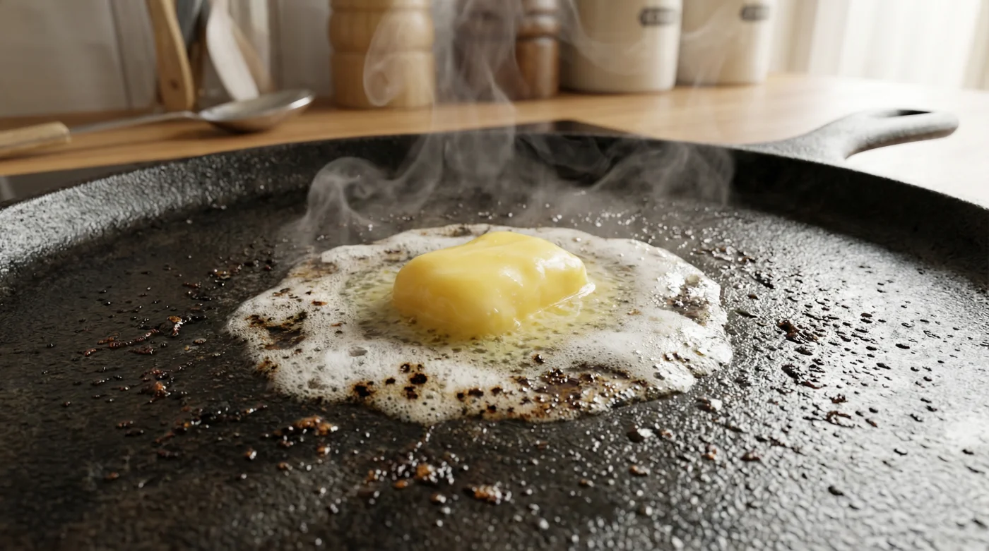 | Espuma dorada y uniforme al derretirse lentamente. | Chisporroteo agresivo y gotas de grasa saltando del fogón. |