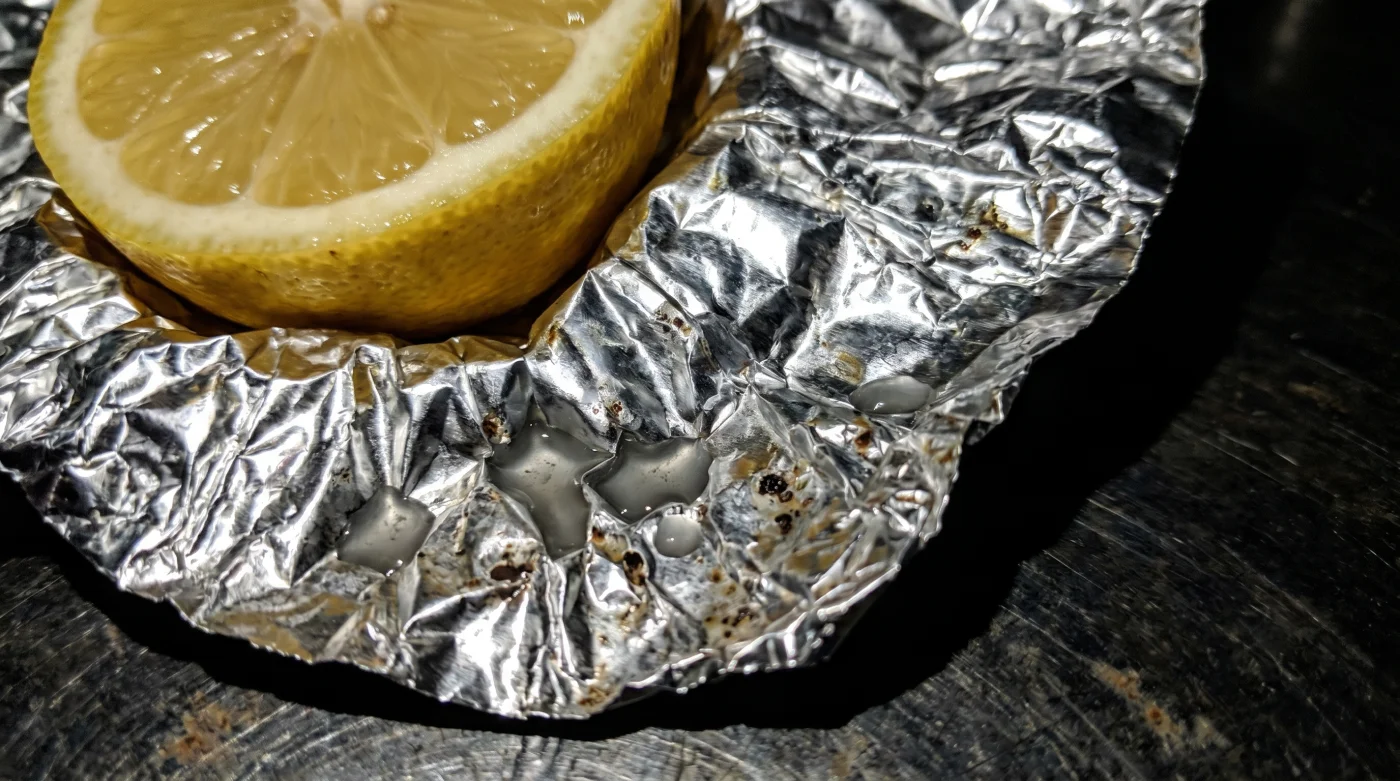 Imagina el papel metálico como un muro poroso. Cuando el ácido cítrico, o tartárico, toca el aluminio, actúa como un pequeño martillo químico invisible. El ácido literalmente disuelve la barrera protectora. A simple vista, tal vez solo notes que el papel se oscurece un poco o desarrolla pequeños agujeros grises donde tocó el jugo del limón.