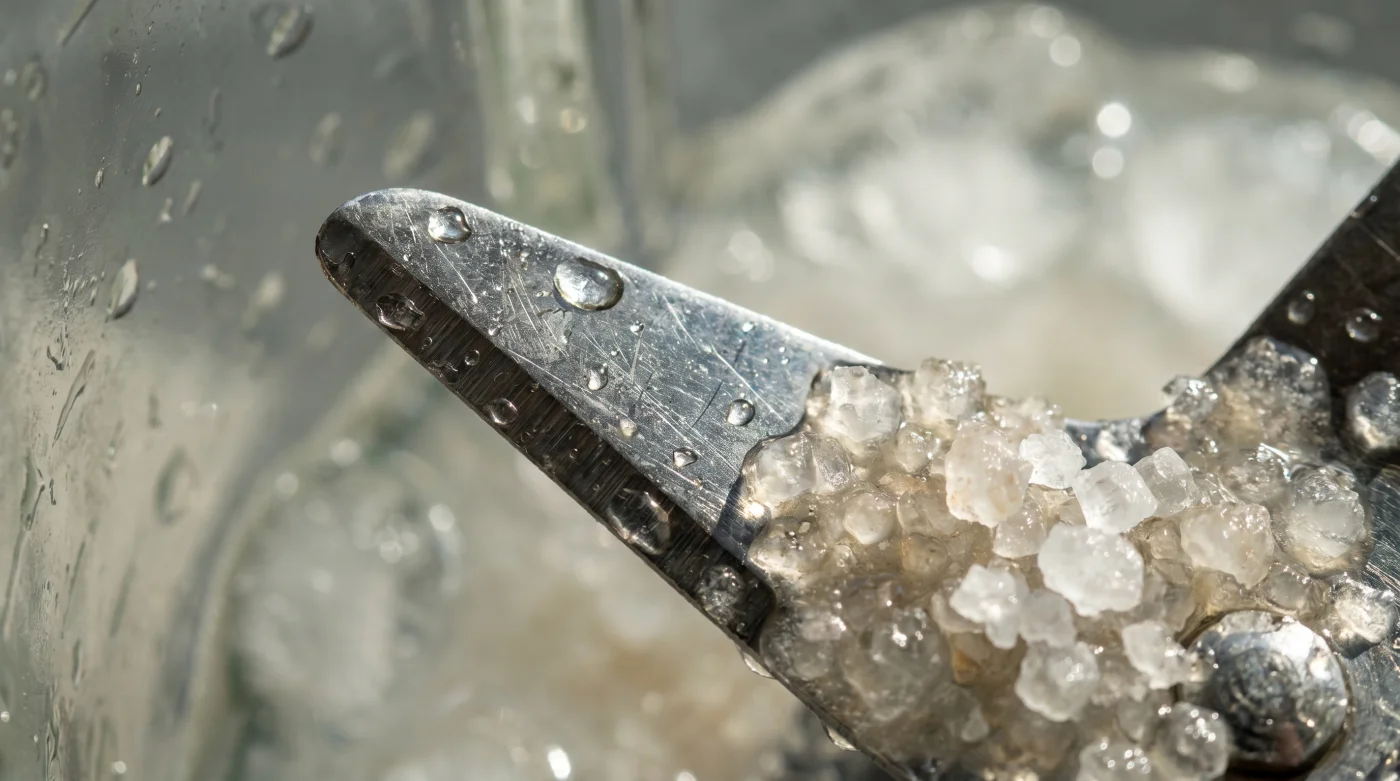 Al intentar lavar y afilar desarmando todo el conjunto, estás ignorando la enorme fuerza cinética que el motor te ofrece de forma natural. Al introducir una mezcla de hielo y sal marina gruesa, usas la física a favor, transformando la debilidad del filo en un mecanismo de auto-reparación donde el frío tensa la estructura molecular del acero.