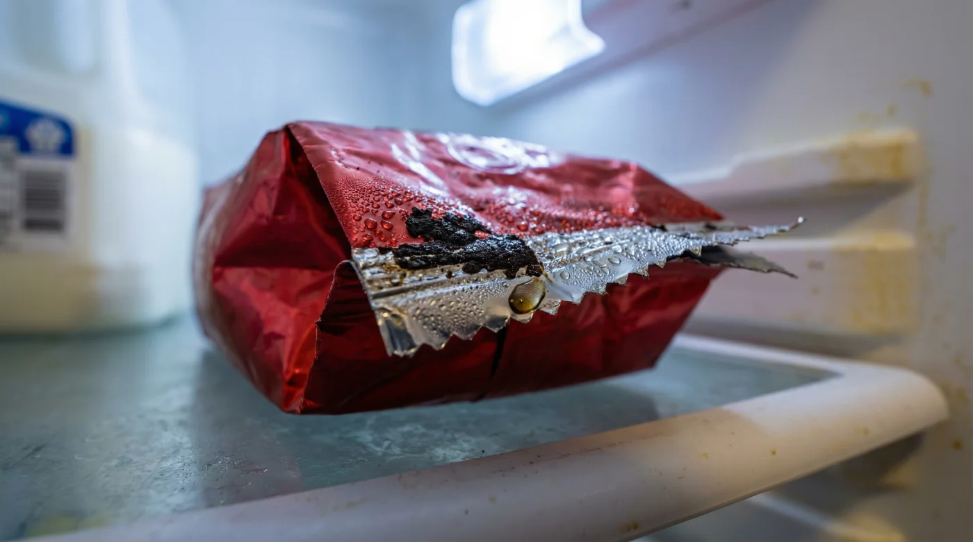 El verdadero problema no es el frío en sí, sino el choque de mundos. Cada vez que sacas tu bolsa roja de la nevera al ambiente cálido de tu cocina para preparar tu tinto, ocurre un choque térmico agresivo. Esa diferencia de temperatura obliga al interior del empaque a sudar. Y es aquí donde ocurre la tragedia: esa condensación invisible atrapa los aceites esenciales del café, los mismos que guardan su sabor y aroma, y los extrae prematuramente allí mismo, en el plástico frío.