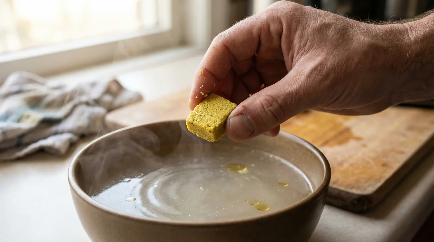 La revelación me llegó conversando con Héctor, un veterano cocinero de una plaza de mercado en Bogotá, famoso por un caldo de costilla que resucita a cualquiera un domingo por la mañana. Mientras picaba cilantro con una precisión envidiable, me miró y me dijo: “El cubo no es una piedra mágica, es polvo dormido. Si lo asustas echándole agua hirviendo, quemas la hierba antes de que despierte y te tragas pura sal. Hay que hablarle pasito, con agua tibia”. Esa sabiduría empírica, heredada de la estufa, tiene un respaldo científico absoluto sobre cómo se comportan las moléculas en tu comida.