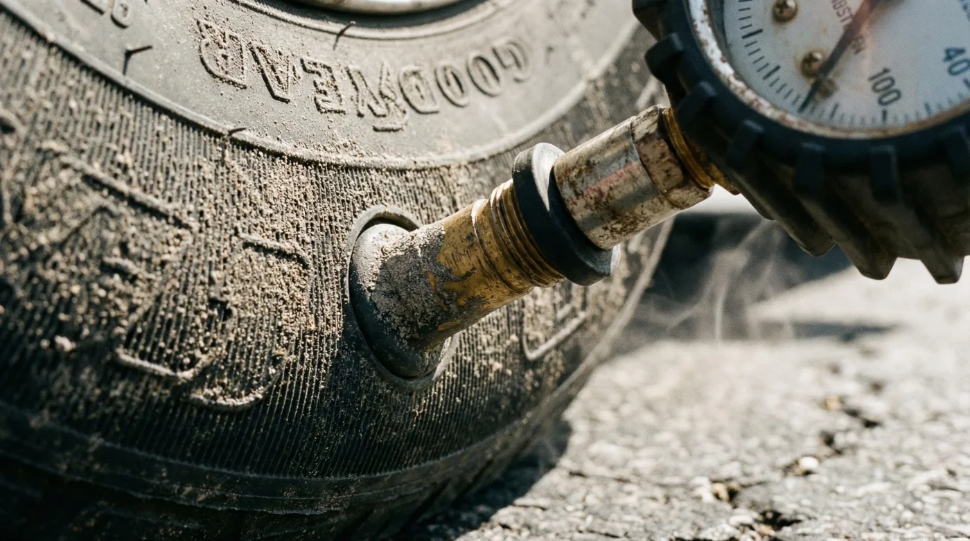 Es mediodía en la carretera central, justo cuando el sol castiga con más fuerza el asfalto. Te detienes en una estación de servicio en el cálido valle del Magdalena para estirar las piernas y tomar algo frío. El olor a brea derretida se mezcla con el tintineo metálico de tu motor descansando. Mientras compras un agua, miras tus llantas Goodyear y decides aprovechar la parada para hacer lo que siempre te han dicho que es correcto: revisar la presión. Tomas la pesada manguera del aire, conectas la boquilla a la válvula, y el medidor te indica que están perfectas, quizás hasta un poco altas. Te sientes tranquilo, convencido de tu precaución. Sin embargo, en ese preciso instante, estás firmando la sentencia de muerte del rodamiento de tus neumáticos.