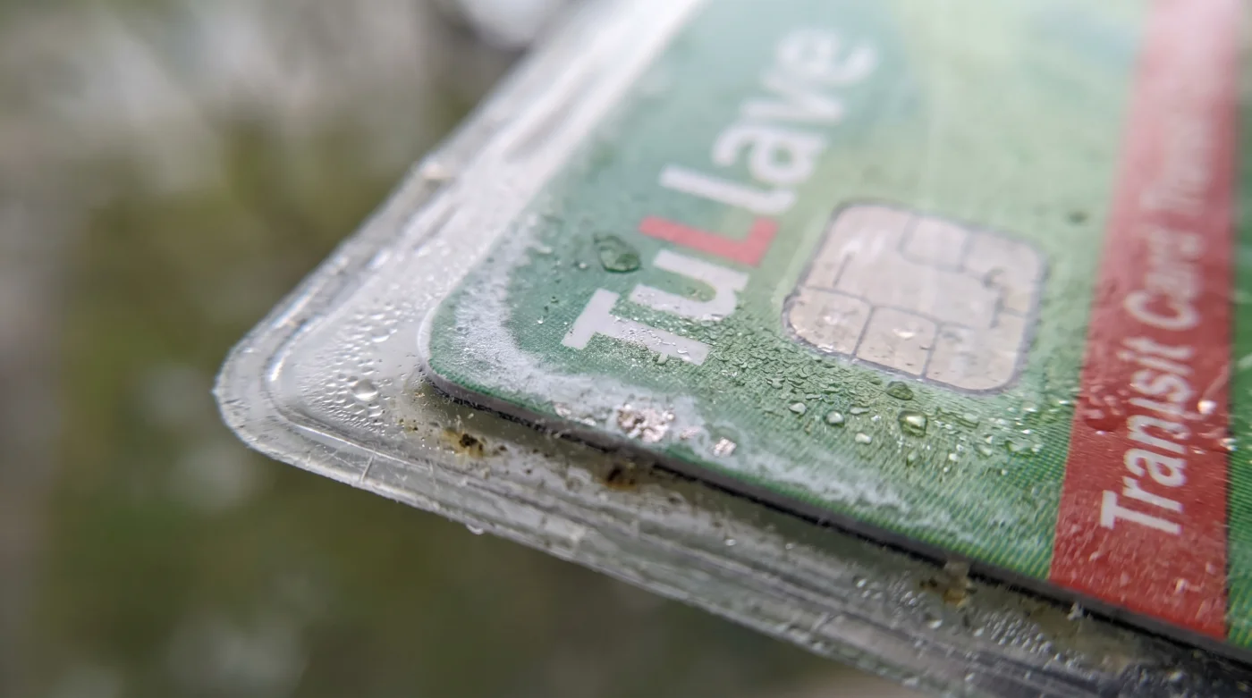 Piensa en la intensa diferencia entre dormir cubierto con una sábana de algodón suave o pasar la noche envuelto en una bolsa sintética de basura. La tarjeta TuLlave no respira orgánicamente, pero el entorno cerrado que la rodea muta constantemente con la lluvia de la tarde y los drásticos cambios de temperatura característicos de la ciudad.
