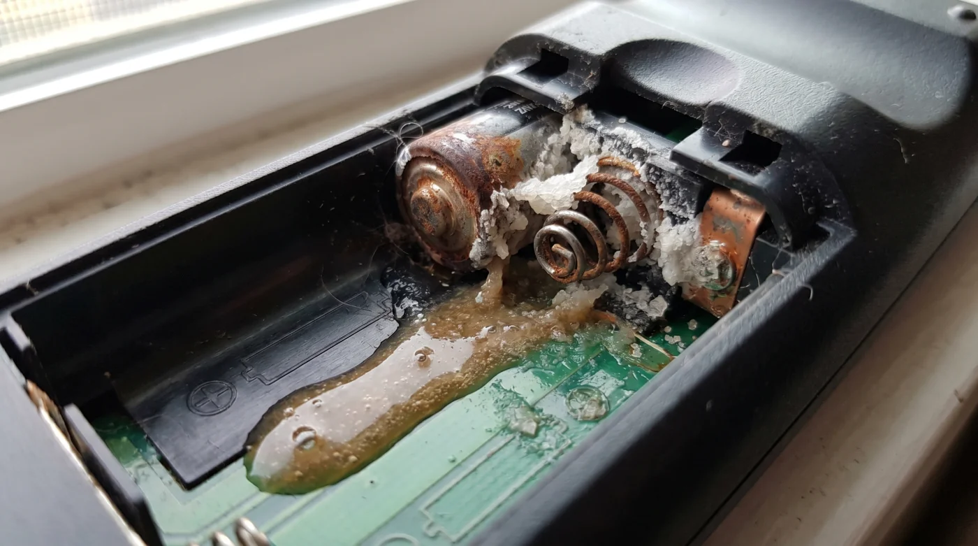 Cuando introduces una batería de zinc-carbón en un dispositivo de poca carga, la reacción química interna colapsa. Al no existir un flujo constante, vigoroso y exigente de energía que mantenga el sistema activo, los componentes internos comienzan a degradarse lentamente en la oscuridad del compartimento, filtrando ácidos corrosivos hacia el exterior buscando una vía de escape inminente.