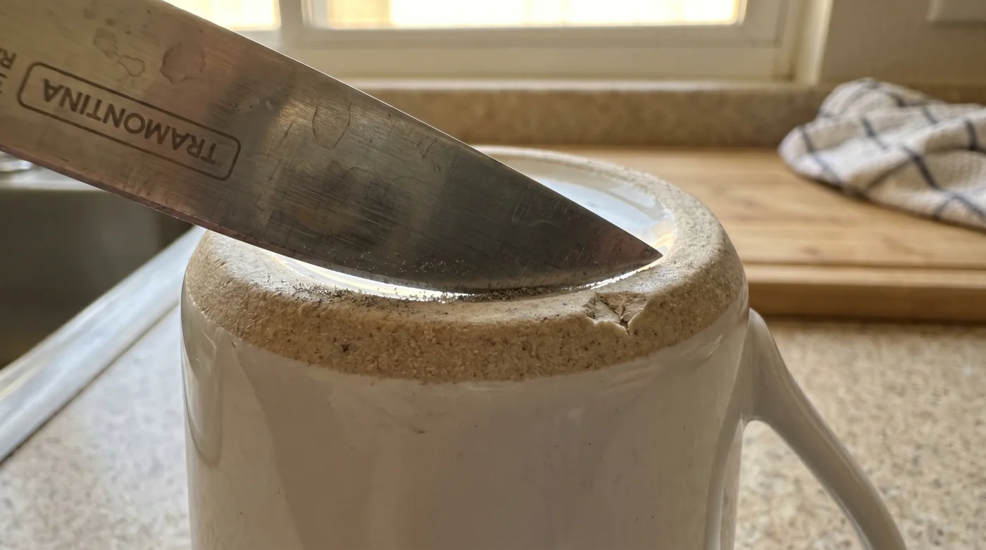 Lo único que necesitas es voltear tu taza, esa misma pieza de loza donde te tomas un tinto caliente y espeso cada mañana. Ese anillo áspero, circular y sin esmaltar que descansa en la base es, en realidad, una de las herramientas de mantenimiento metalúrgico más precisas y eficientes que tienes en toda la casa.