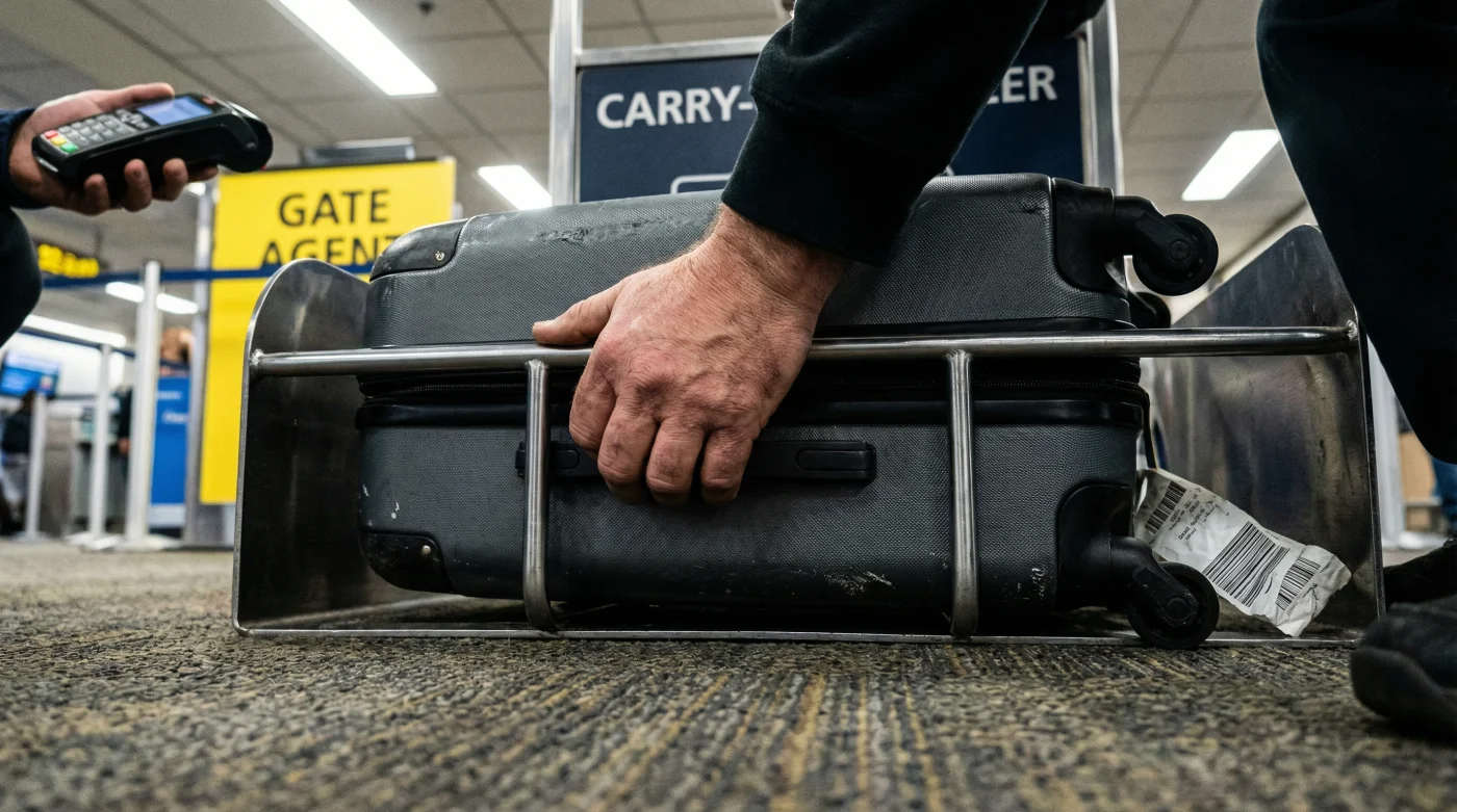 Escuchas el traqueteo inconfundible de las pequeñas ruedas de plástico duro rebotando sobre el suelo brillante de la terminal del aeropuerto El Dorado. Es temprano, el aire acondicionado está frío y el olor a café recién colado se mezcla con una tensión que ya es palpable en la fila de abordaje. Estás a punto de entregar tu pasabordo cuando notas que, unos pasos adelante, la caminata de un pasajero se interrumpe abruptamente. Su pequeña maleta rígida, esa fiel compañera que lo ha escoltado a tantos destinos sin problemas, acaba de convertirse en un obstáculo. El agente de la aerolínea, con un tono cortés pero firme, señala una temida caja metálica de medición. Si la maleta no entra de forma natural, deberá ir a la bodega del avión. El pasajero empuja, la carcasa cruje, pero el equipaje no cede. En ese momento, se anuncia la penalidad económica. Sientes un nudo repentino en el estómago, miras disimuladamente tu propia maleta y te preguntas si serás el siguiente en caer en esta nueva trampa de medidas.
