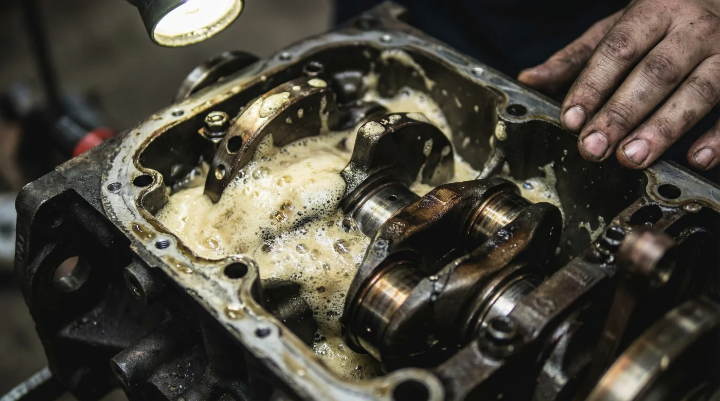 ‘Mira bien esto’, me dijo Arturo, pasando un trapo áspero por el metal destrozado. ‘El cliente pensó que estaba mimando la máquina. Pero cuando echas de más, el nivel sube hasta tocar el cigüeñal, que gira a miles de revoluciones por minuto. Al chocar violentamente contra ese charco, lo bate sin piedad como si fuera una licuadora gigante. El aceite pierde su densidad, se llena de burbujas de aire y se hace pura espuma. Y aquí está el secreto cruel: la bomba de aceite no puede bombear espuma. Al final, las piezas metálicas mueren de sed y fricción, mientras nadan inútilmente en un mar de lubricante’.