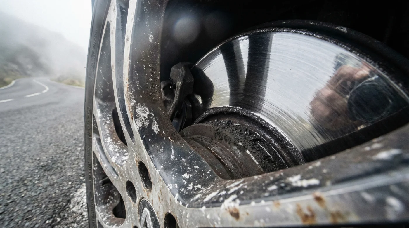 Cuando mantienes el freno ligeramente presionado en bajadas largas, generas una fricción constante. Esta fricción no detiene el vehículo por completo, pero sí eleva la temperatura de las pastillas a más de 300 grados Celsius. El material compuesto de la pastilla se derrite de forma superficial y, al rozar suavemente con el disco, se pule hasta convertirse en un cristal liso. A este fenómeno se le conoce como cristalización de los frenos.