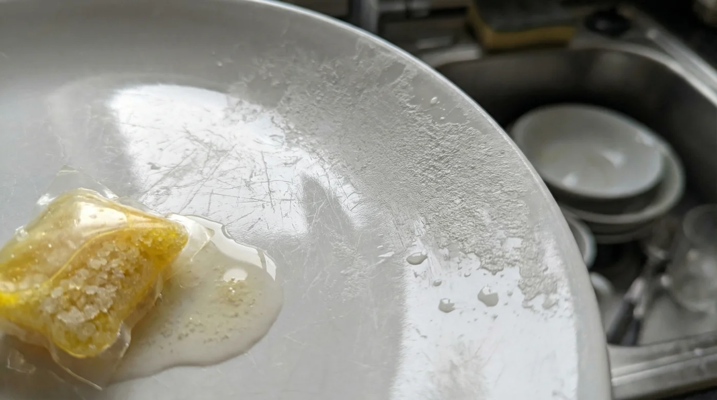 El problema no es la máquina, es la química que le inyectamos. Las cápsulas modernas tienen cámaras líquidas de disolución rápida diseñadas para aguas duras y sartenes industriales, no para la delicada cocción de una vajilla tradicional.