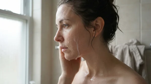 Aquí viene el paso más crítico en tu nueva rutina: no enjuagues. Déjalo reposar por dos minutos completos. Usa ese tiempo sabiamente. Es el momento perfecto para lavar el resto de tu cuerpo, exfoliarte o lavar tu rostro. Ese par de minutos es el tiempo físico y químico exacto que el zinc necesita para construir un escudo invisible sobre tu piel resentida.