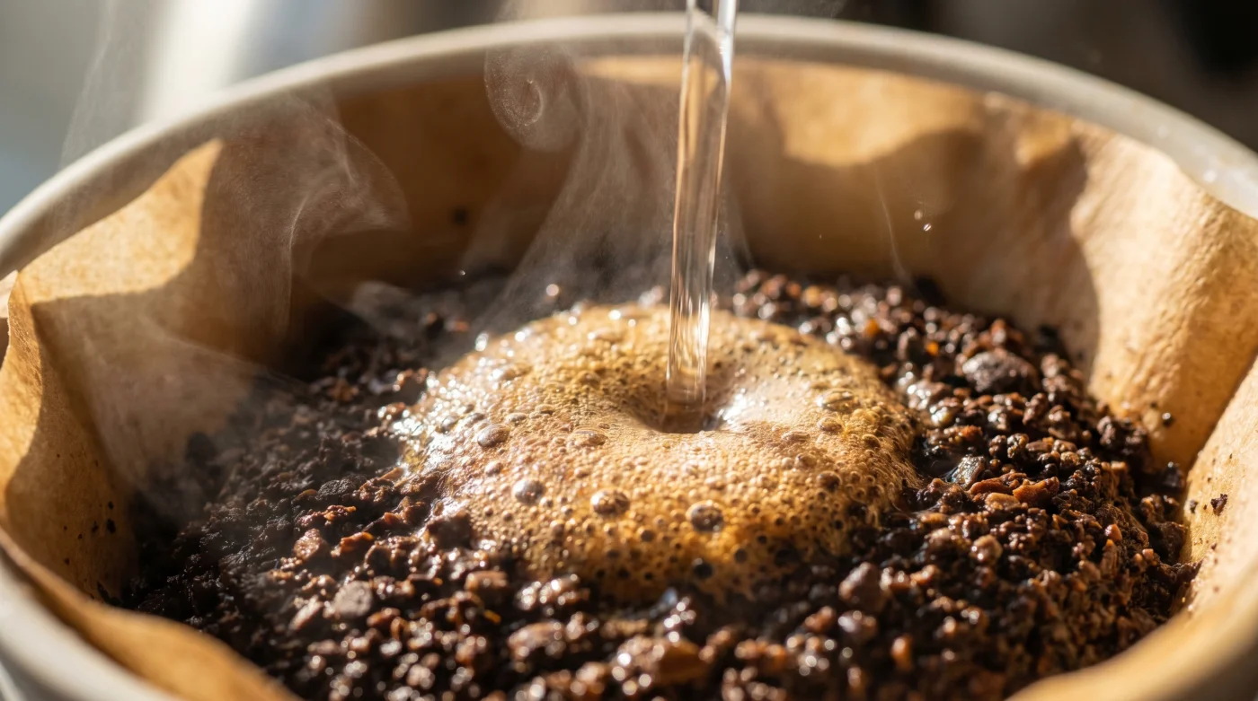 Imagina el grano molido no como una materia inerte de la alacena, sino como una esponja biológica extremadamente delicada, saturada de aceites volátiles y compuestos solubles. Cuando la golpeas directamente con agua a 100 grados centígrados, no estás fomentando una extracción correcta, estás provocando un choque térmico brutal que colapsa su estructura.