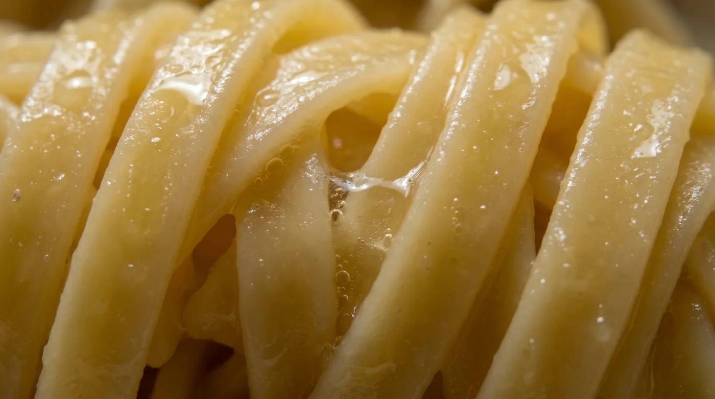 Esa textura masajuda y gomosa aparece cuando el almidón superficial de la pasta queda atrapado bajo la capa de grasa del aceite, impidiendo que el fideo respire y absorba la humedad de manera uniforme.