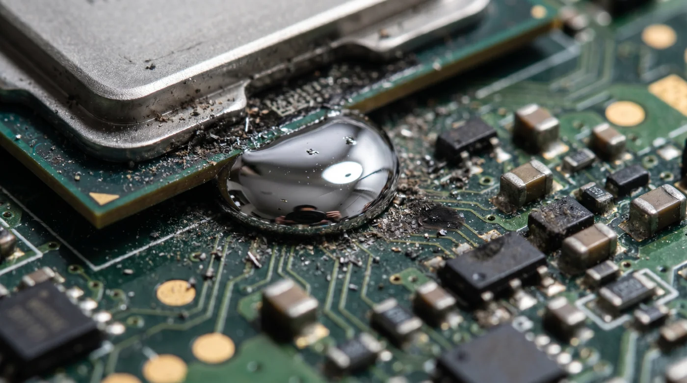 Para entender la magnitud de este fallo, debes olvidar todo lo que sabes sobre la pasta térmica tradicional. Esa pasta gris y espesa que usaban las consolas antiguas era como cemento: se secaba y se quedaba fija en su sitio por años. Tu máquina actual usa algo diametralmente opuesto: metal líquido. Piensa en él como mercurio inquieto, una sustancia viva y fluida que necesita una presión perfecta y una gravedad aliada para no escapar de su confinamiento sobre el procesador principal.