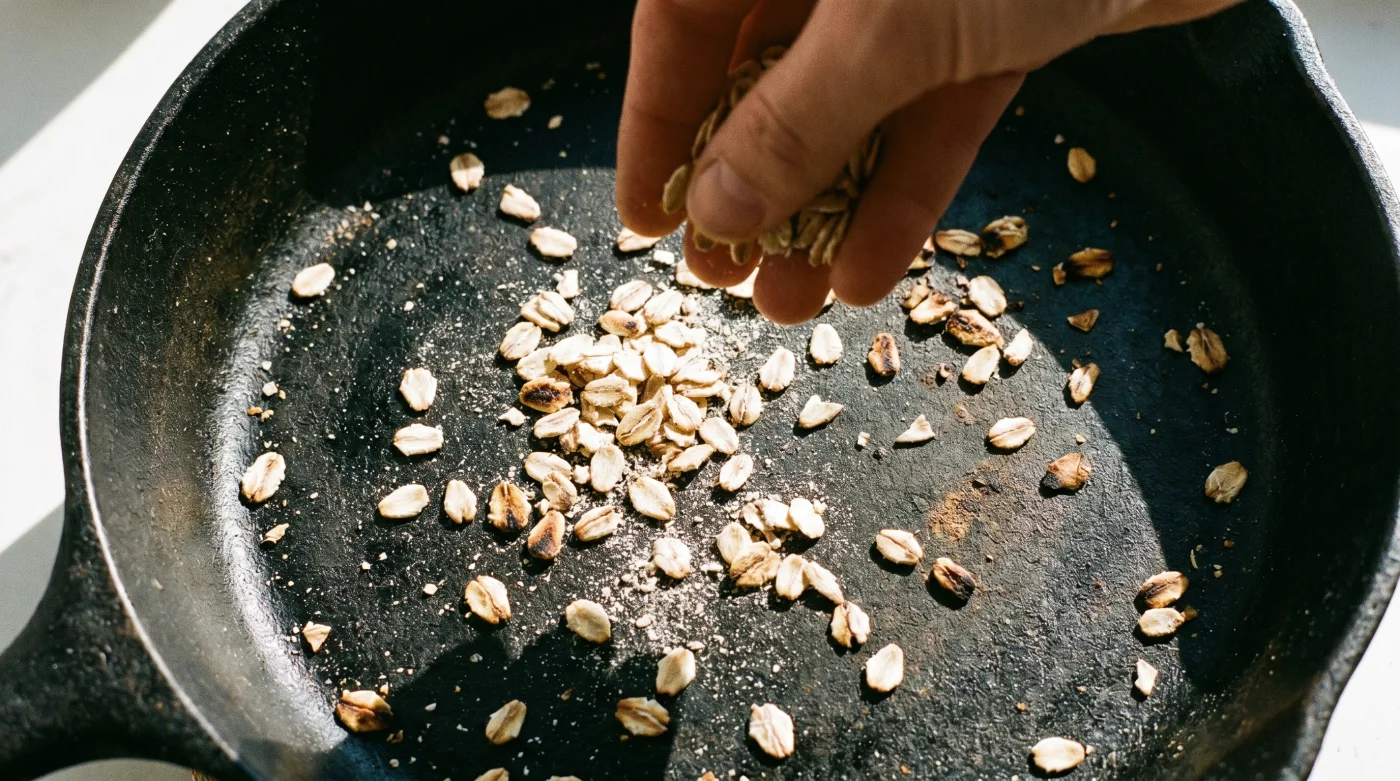 Si tienes exactamente cinco minutos antes de salir corriendo hacia la estación de TransMilenio, usa la misma olla donde vas a preparar la avena. Caliéntala vacía, arroja las hojuelas secas y muévelas por sesenta segundos hasta que huelan a galleta recién horneada. Luego, sí, añade el líquido.