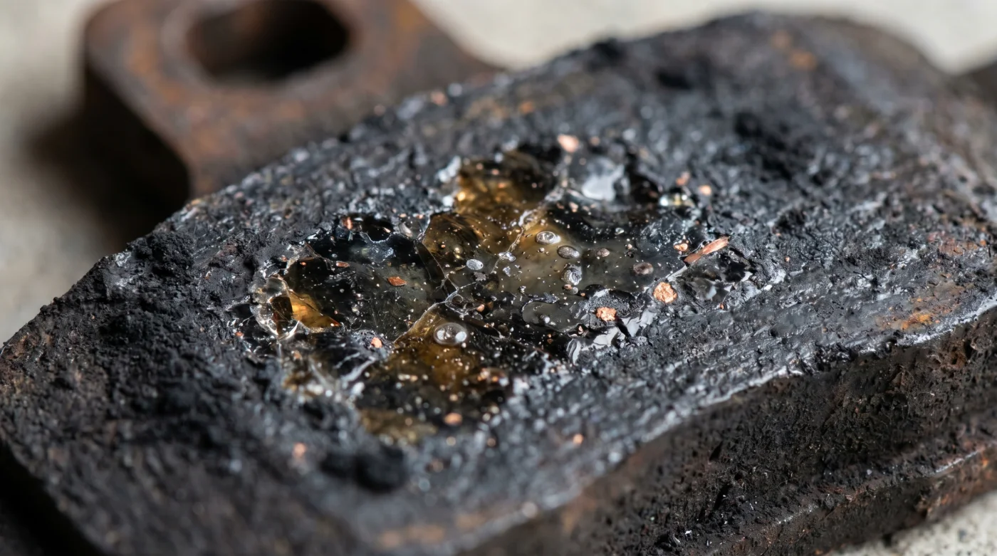 A este fenómeno se le conoce como cristalización. La pastilla no se gasta, simplemente se transforma. Su superficie, antes porosa y áspera para aferrarse al metal, se convierte en un cristal liso y brillante. Empieza a resbalar sobre el disco en lugar de morderlo, perdiendo por completo su capacidad de detener la masa del vehículo en movimiento.