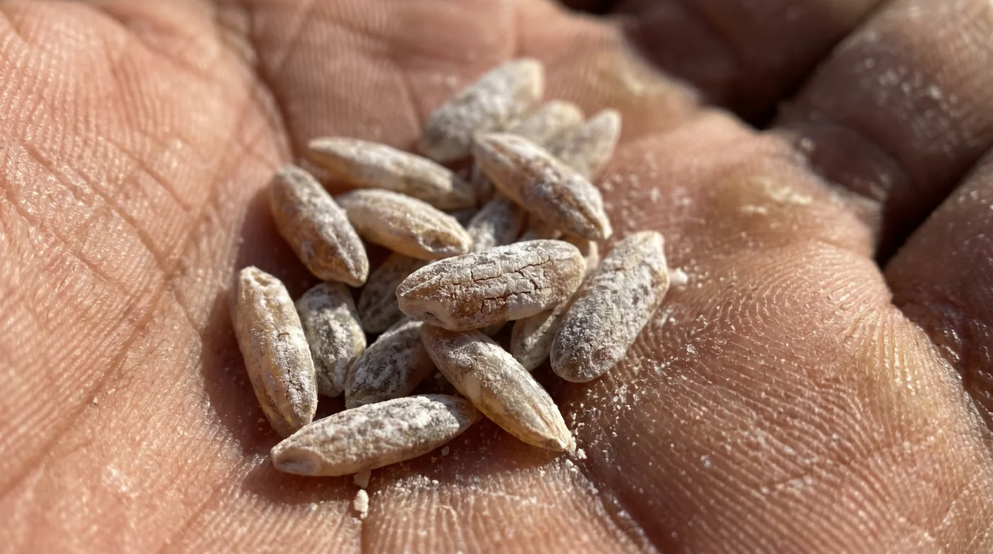 Piensa en un grano de arroz blanco empacado como una casa sólida a la que le han pintado una fachada protectora especial. El proceso industrial moderno toma ese grano, que ha sido pulido y despojado de su cáscara original, y lo rocía con un polvo fino, casi imperceptible al tacto y a la vista humana.