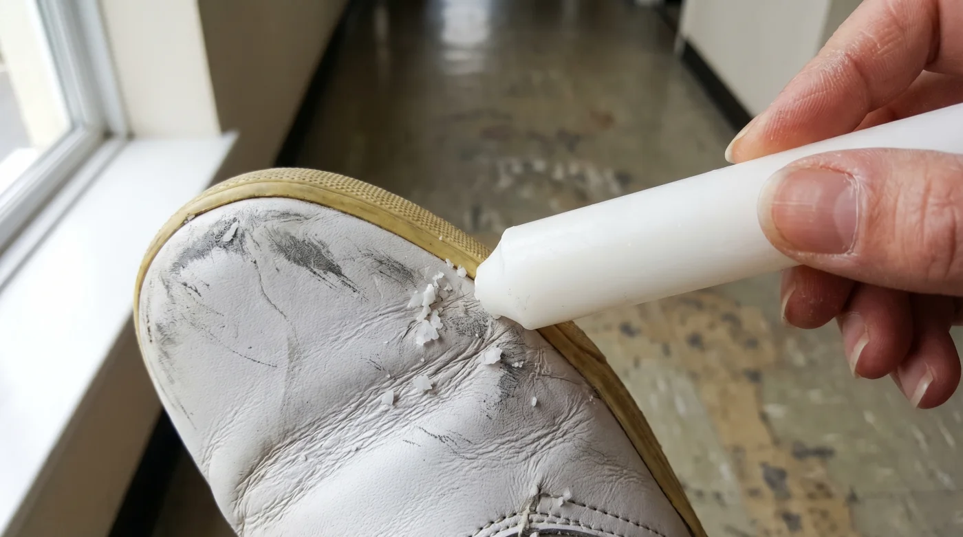 Aquí es donde la perspectiva cambia radicalmente. Siempre hemos visto la mancha oscura en el zapato blanco como suciedad tradicional que debe ser ahogada y arrancada de raíz. Sin embargo, esas marcas de goma, los rayones del pupitre y el roce contra otros zapatos son en realidad transferencias de fricción pura. Pigmento atrapado en micro-abrasiones.