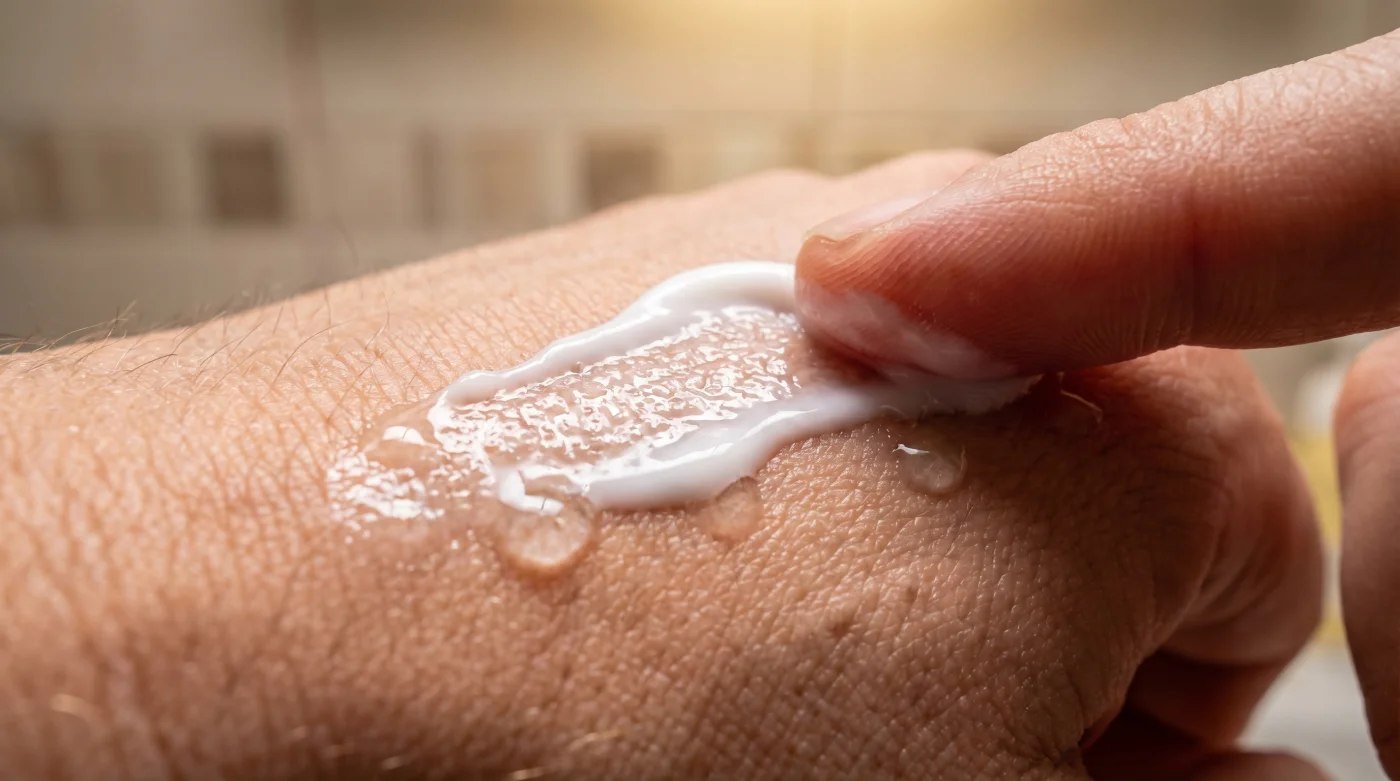 - El calentamiento manual: Nunca apliques los dedos fríos llenos de pomada directamente sobre ti. Caliéntala siempre entre tus propias manos húmedas para iniciar el proceso de emulsión unos segundos antes del contacto final.