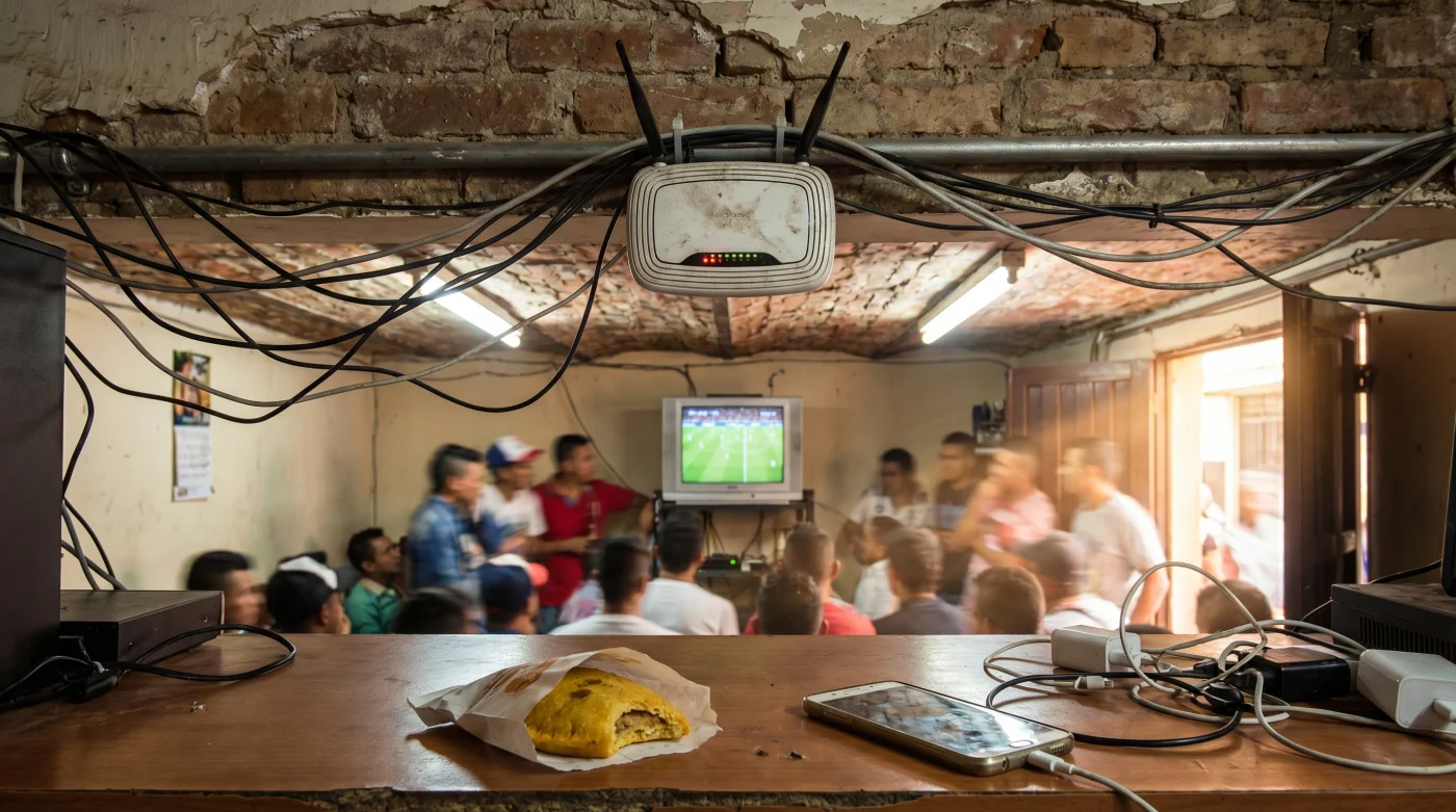 El aroma a café recién molido y pan de bono caliente domina la panadería en Bogotá. La mesa de plástico está rodeada de amigos, las cervezas sudando a 18 grados Celsius en la tarde capitalina, y el reloj marca las 2:00 PM, hora de la Champions League. Sacas tu teléfono, te conectas a la red abierta del local, abres la aplicación oficial de transmisión, y la pantalla se congela. Un círculo de carga gris gira interminablemente antes de lanzar un abrupto error de restricción geográfica. La pantalla negra refleja tu rostro frustrado mientras escuchas los gritos de gol del apartamento vecino. No es un problema de tu suscripción paga, es un conflicto directo con la infraestructura del enrutador que tienes a tres metros de distancia.